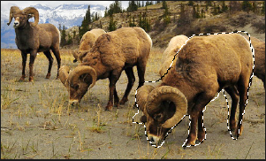 Freehand Lasso: Click the left mouse button and drag the cursor to draw around the area that you wish to select. As you draw, a line appears showing where you have drawn. When you release the mouse, the end of the line joins to the start automatically to complete the selection. The whole selection animates and looks like marching ants.